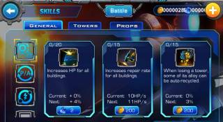 Враги не смогут сокрушить ваши башни если вы увеличите жизни всех зданий при помощи этой программы или за монеты. Так же Вы сможете увеличить скорость постройки зданий или вернуть часть денег затраченных на сооружения обратно в свою казну. Для большей мощи Вам потребуется энергия, запас которой так же можно увеличить как и ее восстановление. Программа позволит начать задание с заданным количеством монет и тогда Вам не придется отвлекаться от задания на добычу ресурсов.