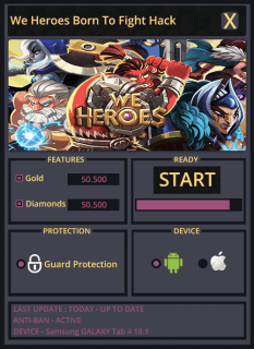 Путешествуйте по сказочному миру и наслаждайтесь качественной картинкой. Отправляйтесь в крестовый поход, наверняка, он принесёт вам море эмоций и сюрпризов. За победу вы можете получить не только тонны золота, а даже новых эксклюзивных героев. Но, естественно, чтобы одержать победу и получить свою награду, ваша команда должна быть полностью совершенна. Взлом We Heroes - Born to Fight сделает эволюцию ваших героев ультраскоростной. Ни в боях, ни на арене равных не будет. Так же вам будут доступны все секреты к игре и коды на золото и кристаллы! Не беспокойтесь, программка устанавливается быстро и легко. Она проверена и не содержит вирусов, абсолютно безопасна. Установите чит We Heroes - Born to Fight и игра для вас получит новое название, к примеру, оно будет звучать так: Мы – настоящие чемпионы и мы не рождены сражаться, мы рождены побеждать!