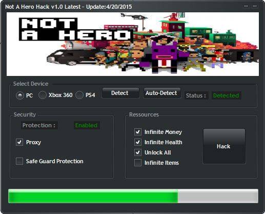Каждая игра имеет свои особенности, фишки и уникальные идеи, но порой, чтобы получить и узнать их все могут уходить долгие месяцы. Однако, всё может быть намного проще, ведь взлом NOT A HERO позволяет с легкостью пройти даже самые сложные моменты этого приключения. Такой чит влияет не на игровой процесс, а немного его обходит, делая характеристики персонажа абсолютно бесконечными. К ним принадлежит здоровье персонажа, запас пуль и гранат, которые в тяжелом бою непременно помогут справиться с непростым противником.