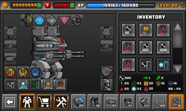 - В игре есть секреты, например далеко не всегда вы будете попадать на тяжело бронированных врагов, и поэтому следует дополнительно оснащать робота легким и скорострельным оружием.