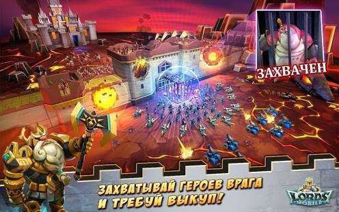 В Lords Mobile вам дают возможность расширить свое королевство за счет соседних земель, прокачать здания, героя и армию. Но в основном здесь вас ждут бои. И тут важна тактика, которой нужно придерживаться. Вам придется выработать выигрышную стратегию, постоянно проводить разведку, гибко реагировать на сильные стороны противника. Как только враг покажет свои слабости, вы должны как можно быстрее отстроить армию и, не теряя времени, перейти в атаку. И вот тут эта Андроид игрушка раскрывает все свои фишки. Каждый из созданных юнитов «реален», то есть на экране будет ровно столько воинов, сколько было создано. Если это 10 человек и 3 осадных орудия – то ничего больше не будет.
