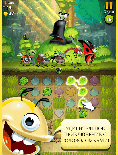 Маленькие букашки спокойно жили в своих домах, ходили в гости, общались и наслаждались жизнь, но спокойное существование нарушил прилетевший метеорит. Он обратил слизней в ужасных монстров, пожирающих все на своем пути. Родственники букашек теперь находились в заложниках и только война поможет вернуть близких и освободить любимую страну. Для свержения слизняков понадобится вся отвага и сила букашек, а игрок, скачавший игру на свой андроид, выступит главным помощником в этом нелегком задании. По мере прохождения и увеличения уровня, будут появляться новые персонажи со своими умениями и силами. Каждая букашка будет иметь свой цвет и определенную способность, собрав определенное количество цепочек, можно будет воспользоваться супер способностью букашки, которая дает определенные выгоды. Будь то уничтожение элементов одного цвета, уничтожение столбца или ряда, а, может быть, взрыв ближайших элементов. Чтобы пройти очередной уровень, нужно внимательно изучить характеристики букашек, верная расстановка сил поможет наносить сокрушающие удары и быстрее одолеть злодеев.