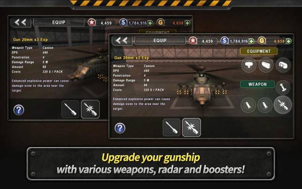 В мире как всегда, неспокойно, то тут, то там вспыхивают военные конфликты. Враг не дремлет, а наоборот пытается отхватить себе покрупней территорий и побольше ресурсов. Пилотам союзнических войск предстоит выполнить немало боевых задач по уничтожению сил противника, его техники и баз. Но профессионалов стало не хватать, и на смену им набирают зеленых новичков, ничего пока не понимающих в летном деле. С этого и начинается наша игра. Управление сперва представляется ничуть не проще, чем у настоящего вертолета. Изменение высоты, повороты и захват цели выполняются наклонами гаджета, причем по умолчанию с очень высокой чувствительностью. Советую сразу снизить её в настройках, хотя бы для начала. Из обычного управления доступно только «вперед» «назад», ускорение и управление оружием. Тап вдоль экрана - отклонение.