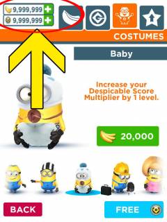 Взлом Despicable Me - Гадкий Я ускорит прохождение и разблокирует все что вам не удавалось разблокировать самим. Оденьте миньона в костюм, который вам по душе и дайте оружие, которое не было доступно ранее. Просто введите любое число бананов и жетонов и наслаждайтесь процессом игры.