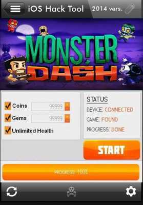 Взлом на Monster Dash для Android (Андроид) и iOS наделяет рядом преимуществ. Использую чит-программку, можно получить монеты для прокачки оружия, и открытия уровней. К слову, монеты в игре можно заработать, убивая нечисть, и собирая выпадающие из них монетки. Активировав чит для Monster Dash, программа наделит персонажа также и бесконечным здоровьем, делая его практически бессмертным. И самое главное – чит на кристаллы, которые можно использовать, если персонаж случайно упал в пропасть.
