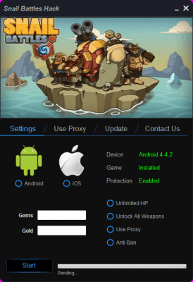 Если вы нуждаетесь в золоте или кристаллах, можете приобрести их за реальные деньги, а можете ни потратить ни копейки, скачав чит на Улитка сражения Snail Battles для Android(Андроид) и IOS.