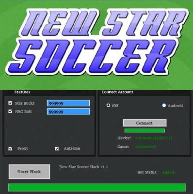Взлом на New Star Soccer даст вам бесконечное количество звезды и ресурсов, и они приведут вас на вершину успешной карьеры. Это чит просто установить и дополнительных знаний не понадобиться. В нем есть анти-бан, поэтому вас не смогут заблокировать в игре.