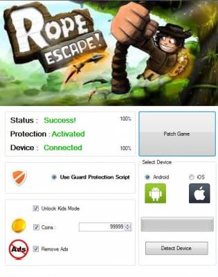 Взлом на Rope Escape дают игроку неограниченное количество монет и исправляют некоторые старые баги. к примеру, чит позволит игроку возможность дальше и выше летать на катапульте и даст преимущество в очной схватке с дикарями, а также есть возможность включения режима Бога в игре и получить бесконечное количество монет для прокачки своего героя и его возможностей. Ведь, согласитесь, гораздо быстрее один раз воспользоваться читом, чем долго и нудно проходить игру.