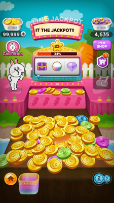 LINE Dozer - это невероятно увлекательная игра где вы будете сражаться за главный приз сумма которого напрямую зависит от количества игроков. Вам нужно только бросить монеты и сравнять с землей свой путь к полной коллекции. Вы присоединитесь к Брауну, Луне, Кони и другим персонажам данной игры, чтобы заработать звание лучшего толкача пенни. Процесс игры состоит в том что вам нужно нажать на кнопку падения монет и подобрать оттолкнувшиеся от края экрана пенни. После чего вам нужно бросить монетку в щель и заставить вращаться слоты. Выпавшая комбинация откроет вам новые события. Чтобы выиграть джек-пот вы должны обойти своих противников и первым добраться до финиша. В том случае если вы хотите облегчить себе путь к победе и получить сразу все преимущества, которые дает игра, скачайте чит на LINE Dozer для Android(Андроид) и IOS.